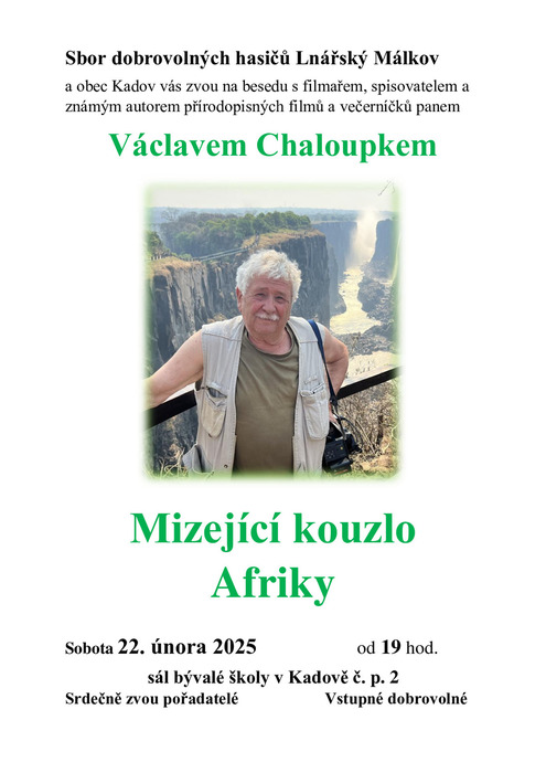 Úvod > O obci > Aktuality > Pozvánka na besedu s Václavem Chaloupkem v Kadově